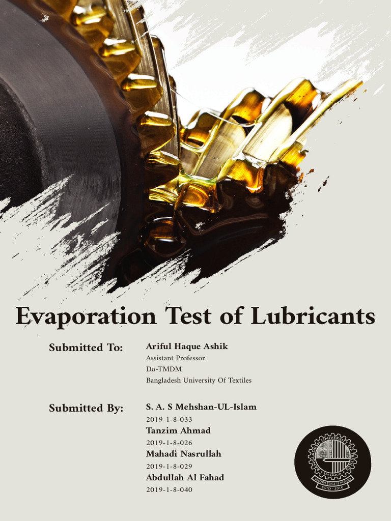 Evaporation Test of Lubricants PDF Lubricant Oil